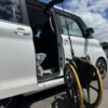 そしてもう一つが、車いすをラゲッジスペースに収納するための「カロリフト40」です。これは簡易的な電動クレーンのような装置で、スイッチ操作一つで重たい電動車いすも軽々と吊り上げて、車内に収納してくれます。